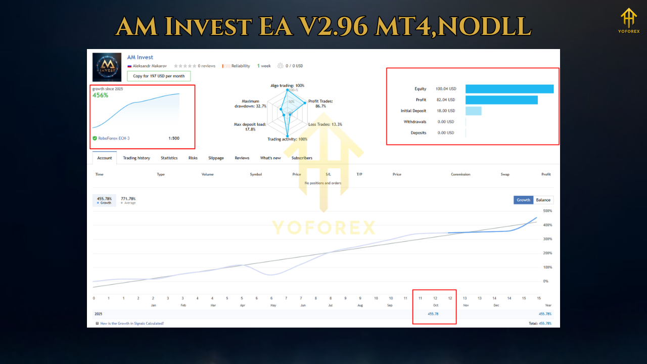AM Invest EA V2.96 is a rules-based expert advisor for MetaTrader 4 that focuses on trend-aligned entries with risk-first position sizing. The strategy blends momentum confirmation (to avoid false starts) with volatility filters (to avoid overtrading during range chop). The EA does not rely on martingale or dangerous grid multipliers—position sizes are calculated from risk percentage and instrument volatility, and it uses a clean stop-loss/take-profit logic so you can read your trading journal without needing a decoder ring.