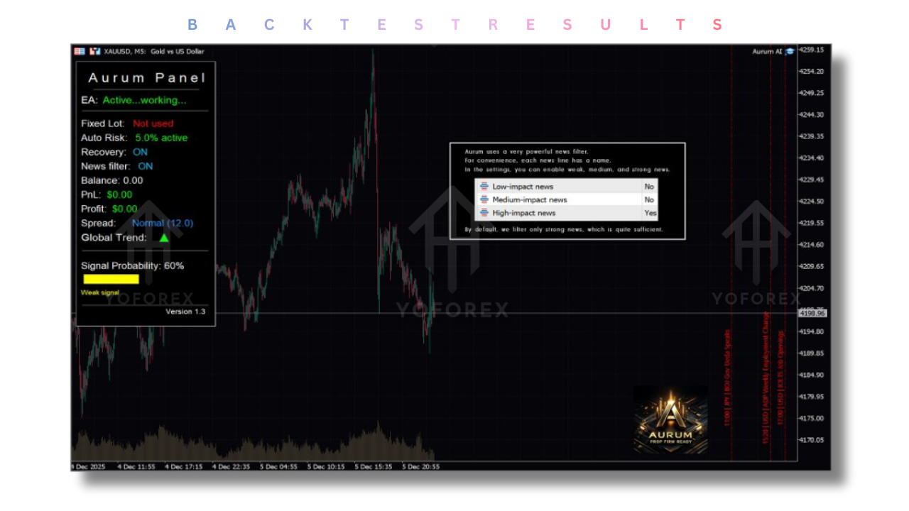 While Aurum AI EA V1.3 promises strong results, it's important to backtest the EA thoroughly before going live. Many traders have reported solid backtest results, with the EA providing stable returns over extended periods. However, results can vary based on market conditions, broker spreads, and timeframes. For best results, traders are advised to run the EA in demo accounts before committing real capital.