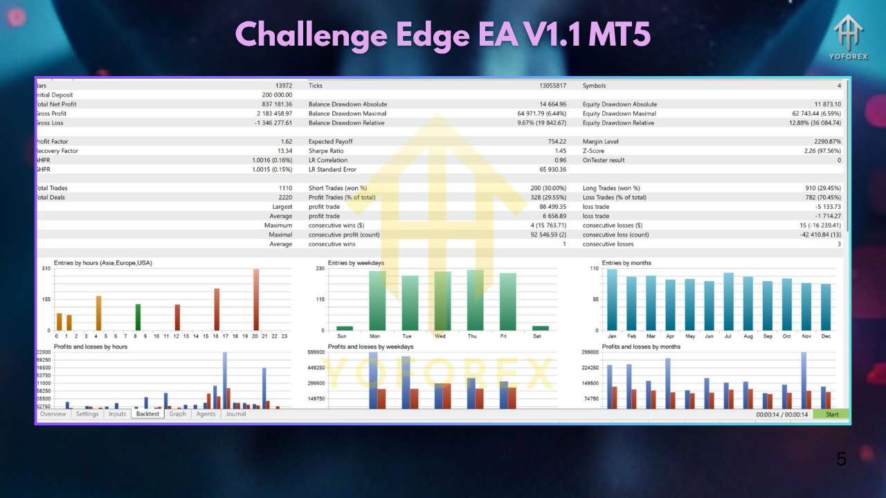 Built by professional quant developers at YoForex, the EA runs smoothly on H1 and M30 timeframes, operating best under ECN conditions. The balance between precision entries and tight risk control is what sets Challenge Edge apart from the typical “flip account overnight” bots out there.