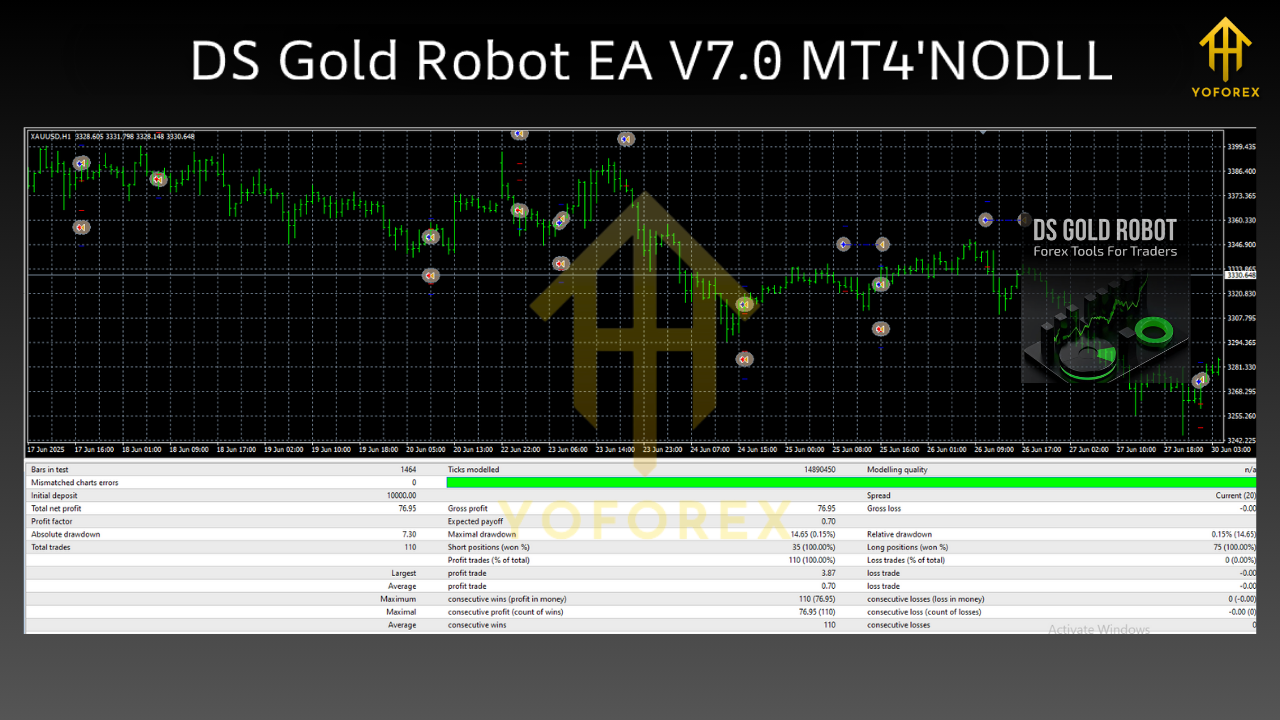 The heart of the DS Gold Robot EA V7.0 is its advanced algorithm, which continuously monitors the gold market and identifies high-probability trading opportunities. This algorithm evaluates market data in real-time, detecting price patterns and trends that can lead to profitable trades. It’s specifically designed to take advantage of gold’s volatility and liquidity, ensuring that each trade has the best chance of success.