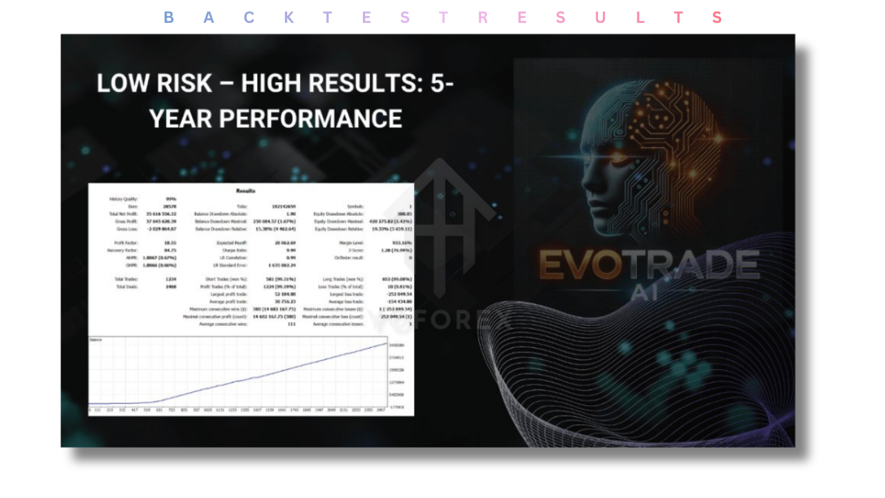 The backtesting data provided by EvoTrade EA shows positive results in simulated conditions. However, it’s important to note that past performance in backtests does not guarantee future results. Many traders have reported mixed results on live accounts, with some experiencing significant drawdowns. It’s always recommended to test the EA on a demo account before deploying it in live trading environments.
