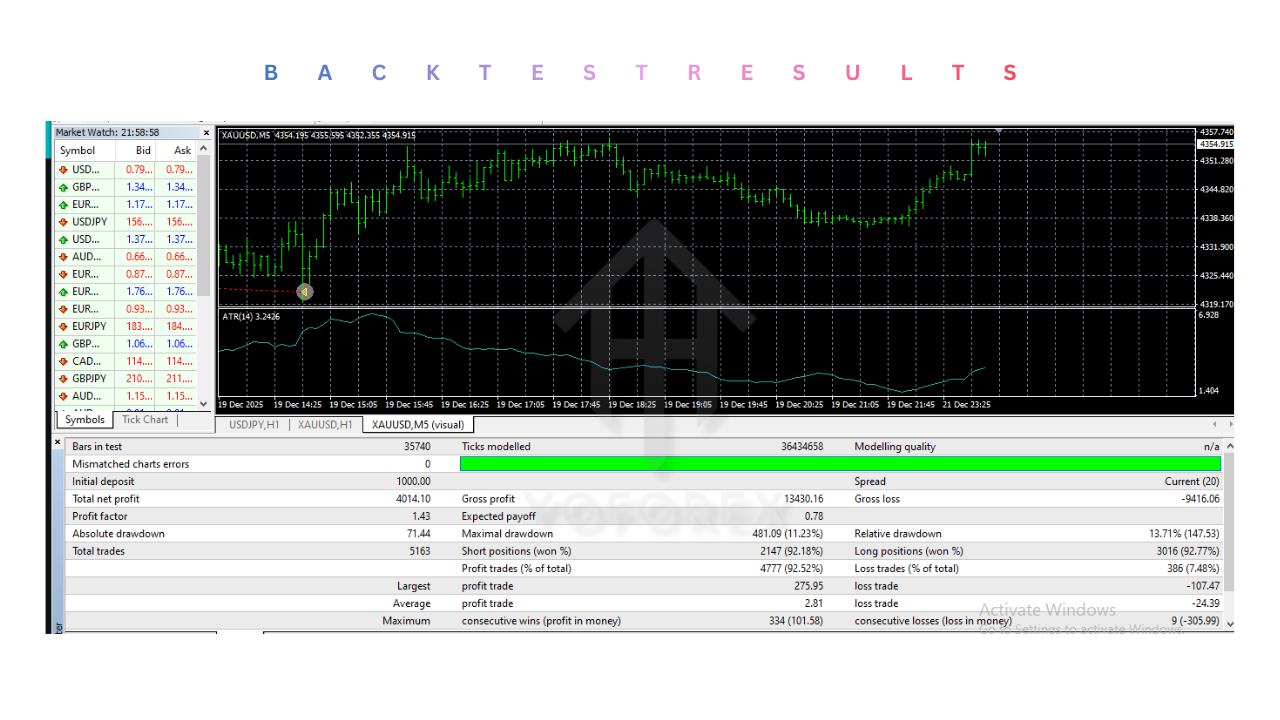 - Backtest and Optimization: Traders can backtest the EA to optimize performance based on their chosen timeframes and currency pairs.