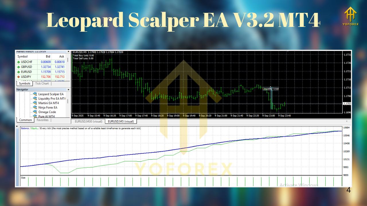 Built by YoForex Premium, this automated trading system is designed to hunt micro-profits across volatile markets while keeping your equity protected. Just like a leopard — quiet, quick, and precise — this EA spots opportunities in milliseconds and executes trades with surgical accuracy.