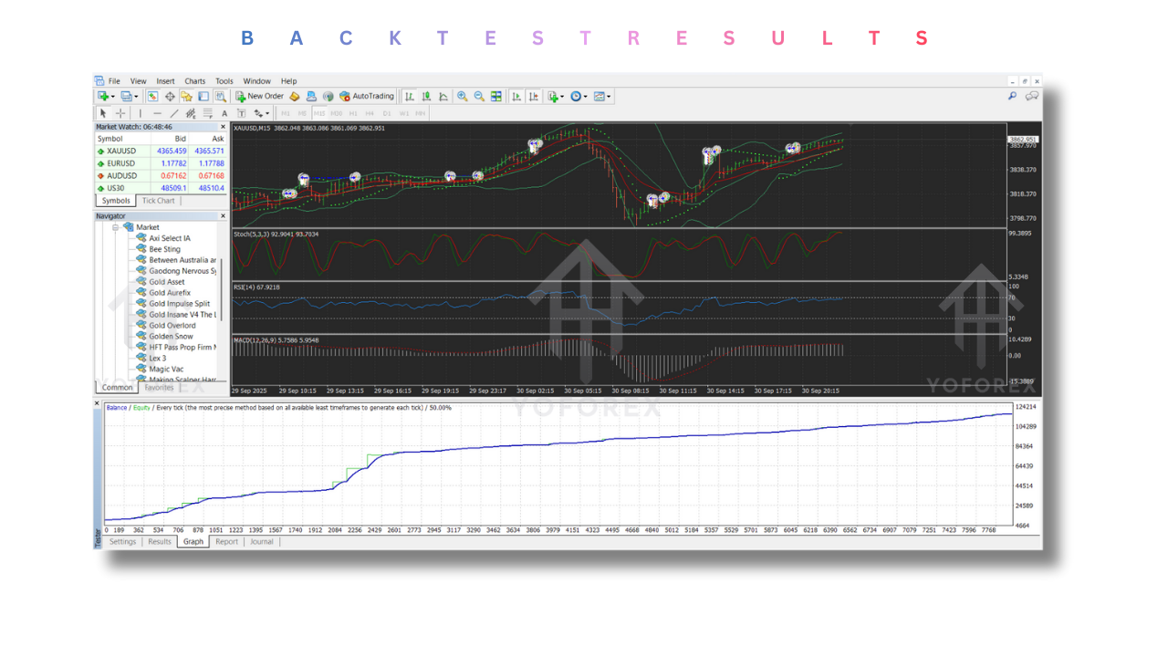 The EA is programmed to operate on the M15 timeframe, a balance between short-term precision and broader trend awareness. This timeframe allows the system to capture intraday movements while still respecting higher-timeframe momentum.