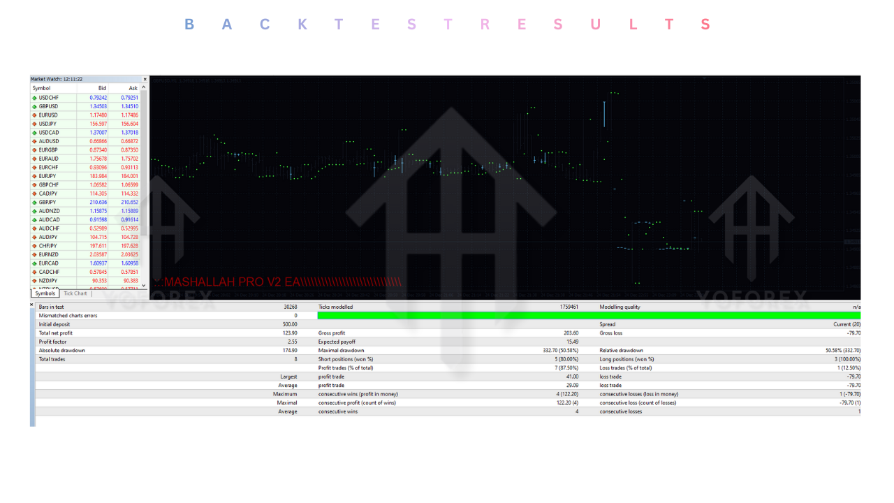 At FXCracked, we believe in verifying claims with data. We subjected the MASHALLAH PRO EA V2.0 to a rigorous stress test using 99.9% Quality Tick Data on the MetaTrader 4 Strategy Tester.