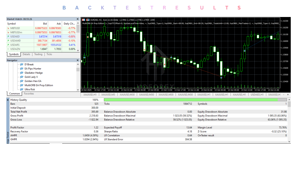 When using the MultiORB EA V6.1 MT5, users can access detailed backtesting results to evaluate its performance over different periods. The EA’s robust backtesting function ensures that traders can make data-driven decisions before going live.