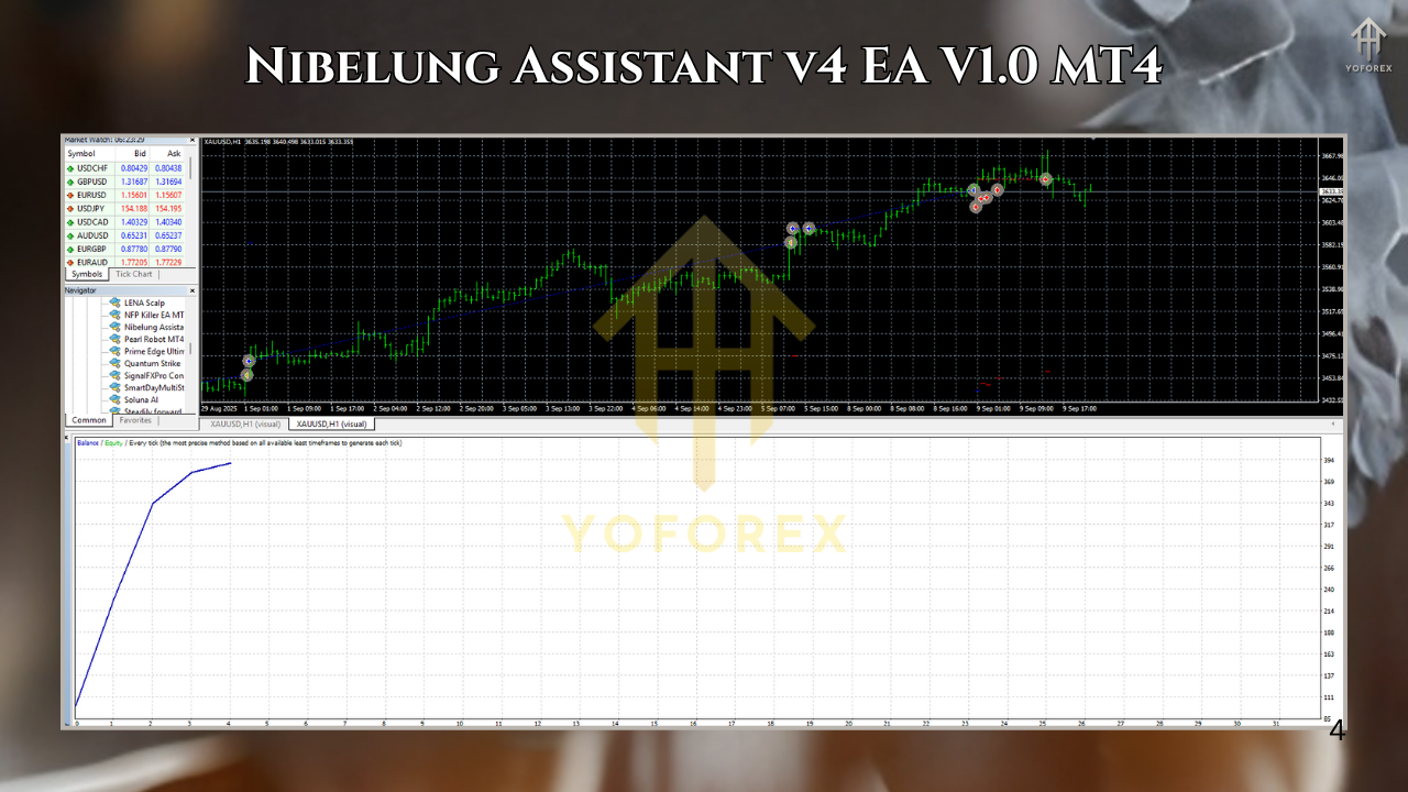 Nibelung Assistant v4 EA V1.0 MT4 is built to help you trade more systematically—no last-minute panic clicks, no “coz I feel it” entries. It combines trend-aligned entries, dynamic position management, and multi-layered risk controls that help you ride momentum while cutting off tail risk. You can use it across common pairs (EURUSD, GBPUSD, USDJPY, XAUUSD) and popular timeframes (M5–H1), with a clear bias toward liquidity hours and stable broker conditions (low spread, low slippage, fast execution).