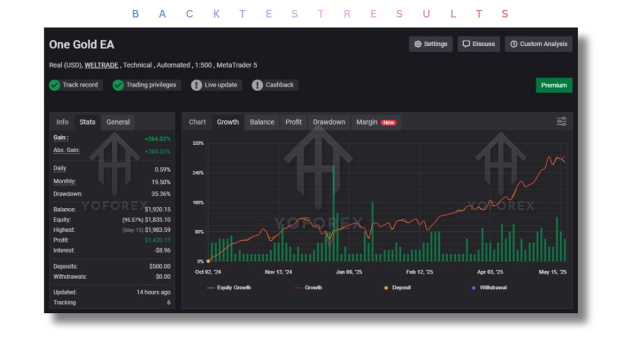 Like all EAs, One Gold EA V7.3 does not guarantee profits. Past performance is not necessarily indicative of future results. - Broker Dependency: