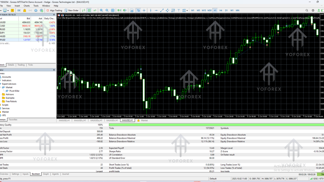 Over multiple tests across the last 3–5 years, Pivot Killer EA V1.5 performed consistently well, especially on structured markets like EURUSD and USDJPY. Even in volatile zones like gold, the bot maintained a stable growth curve with controlled risk settings.