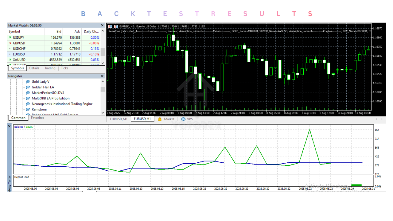 MetaTrader 5 is one of the most popular trading platforms among retail traders. Remstone EA’s seamless integration with MT5 ensures that it is easy to use, even for traders new to automated systems.