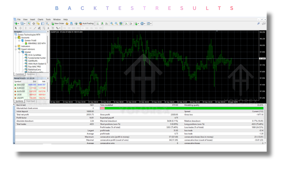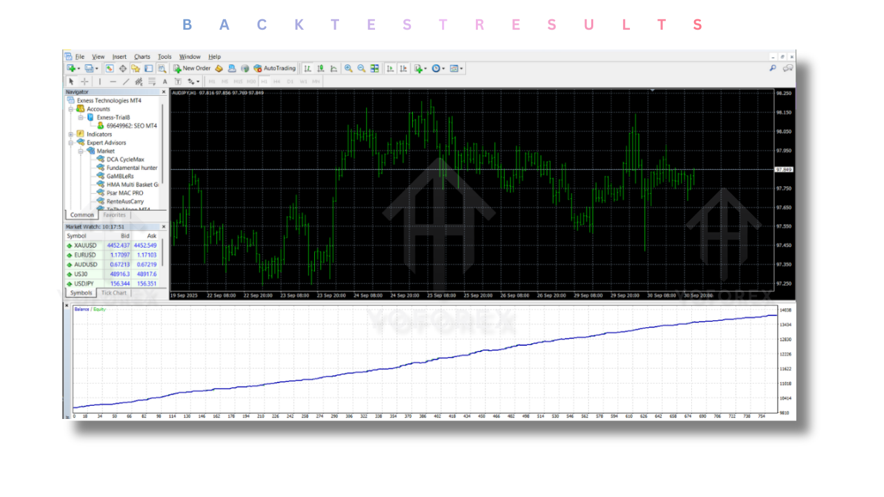 The EA works best with currency pairs where there is a significant interest rate gap. It’s essential to select pairs that exhibit favorable carry trade conditions for the strategy to work.