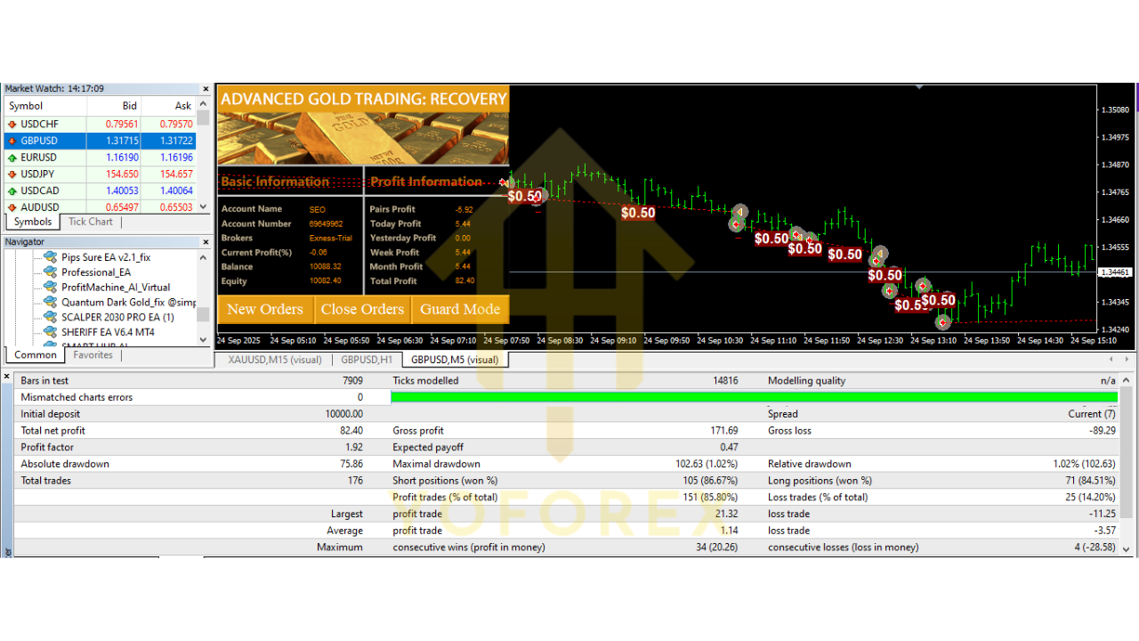 Gold scalping EAs often fail because they overtrade. Sheriff EA avoids this through: