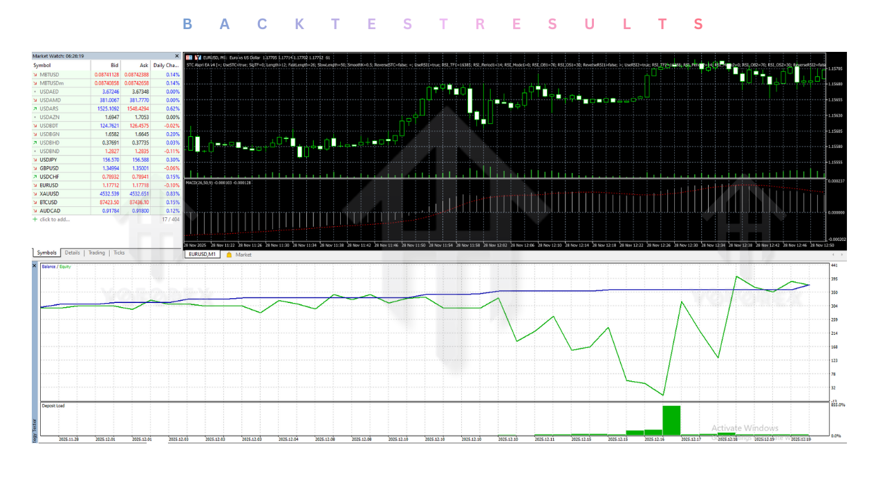 Smart Martingale Recovery (Optional) For traders with a higher risk appetite, the V4.0 update introduces an optional, adjustable recovery mode. Unlike reckless grid systems, this feature is designed to perform a calculated "cost-averaging" entry only when the STC cycle resets again in the favor of the original trade. This feature can be toggled off for a strict fixed-lot strategy, making the EA versatile for both prop firm challenges and personal account growth.
