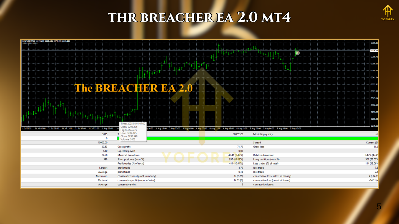 Whether you’re trading forex majors, gold, or indices, The Breacher EA’s multi-layered filters adapt to various volatility conditions, aiming to catch high-probability entries while keeping risk tight.