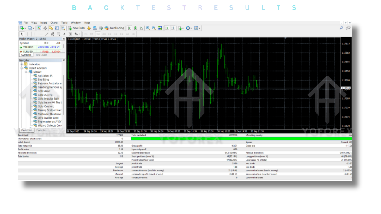The EA’s mean reversion strategy works by identifying mispricing or price deviations in the market, which it expects to correct. The system then places trades accordingly, aiming to profit from the expected return to equilibrium.