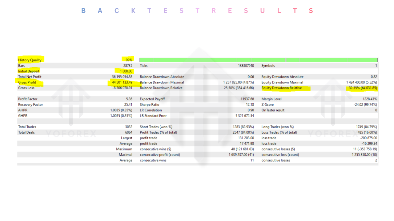 - Win Rate: The strategy maintains a high win rate, typically hovering between 60% and 75% on the H1 timeframe, depending on market volatility.