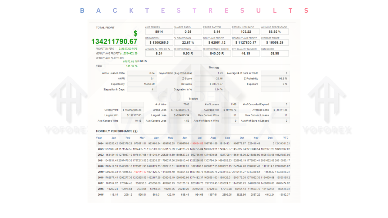 - Profit Factor: The EA consistently achieves a Profit Factor above 1.5, indicating that the gross profit is significantly higher than the gross loss.
