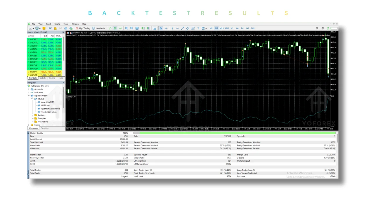 How does backtesting work with Aero X? Use MT5's tester with high-quality data; expect 2.1 Profit Factor and low drawdowns across historical periods.