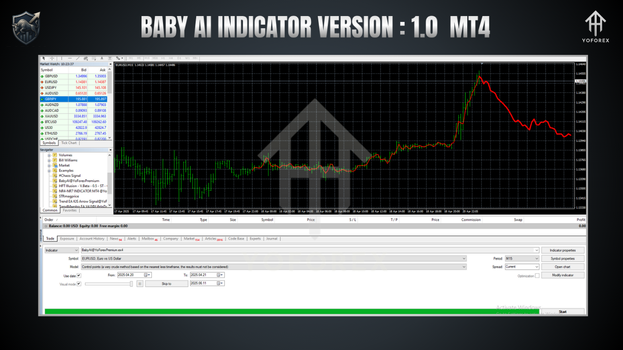 In today’s rapidly changing forex market, traders need every possible edge to stay ahead. That’s where the BabyAI INDICATOR V1 for MT4 steps in—an intelligent, AI-enhanced indicator designed to help traders execute precision entries and exits with ease. Built to suit both beginners and experienced traders, BabyAI acts like a digital assistant, spotting opportunities by scanning multiple technical metrics in real-time.