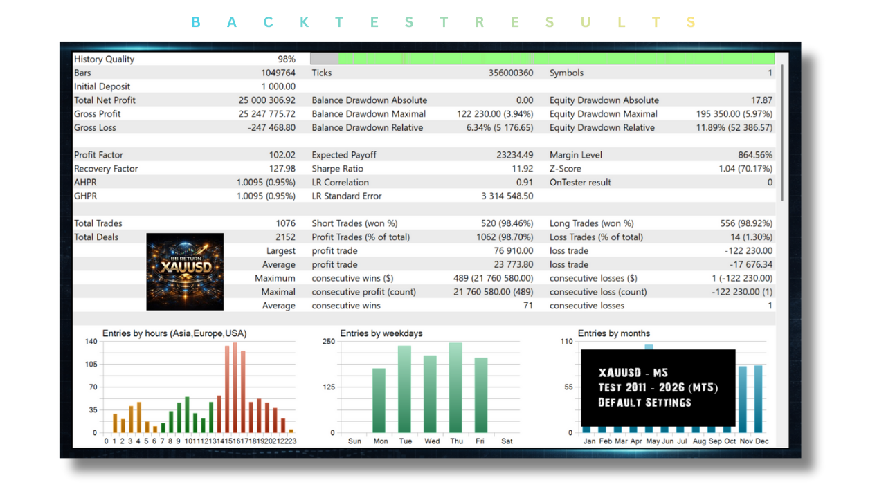 BB Return EA V7.10 MT5 offers several advantages for traders who understand gold market behavior:
