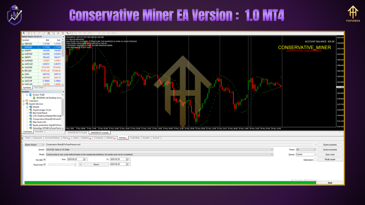 YoForex has built a reputation on transparency, free distribution, and ongoing updates. Unlike other vendors, we believe traders shouldn’t have to pay a subscription for a basic scalper that’s been publicly backtested. Every YoForex EA—including Conservative Miner EA—gets regular tweaks based on feedback from our community. Learn more on our About Us page.