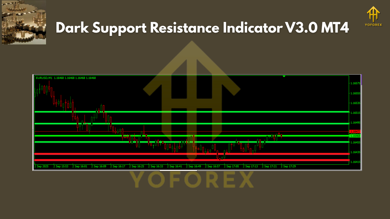 Dark Support Resistance V3.0 simplifies all of this. Instead of redrawing lines every few candles, it does the heavy lifting automatically.