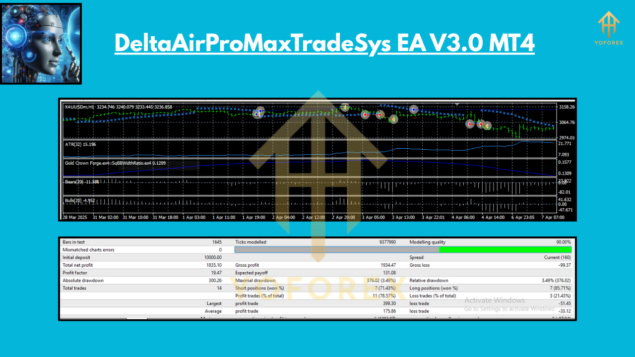 Ready to elevate your trading game? Grab DeltaAirProMaxTradeSys EA V3.0 MT4 today and let automation drive your success. Experience precision, adaptivity, and peace of mind—all wrapped into one powerhouse EA.