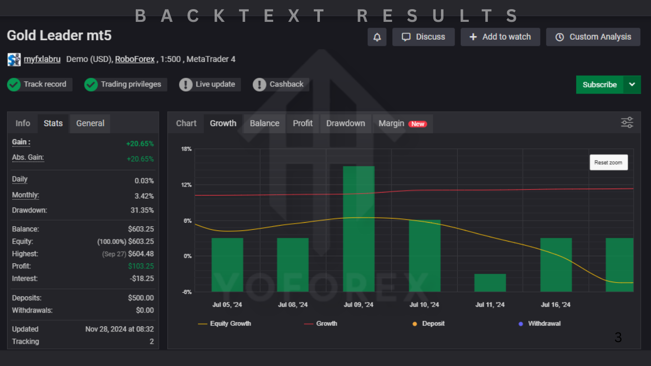 This multi-condition analysis makes Gold Leader EA V1.0 MT5 stable even when gold becomes highly unpredictable.