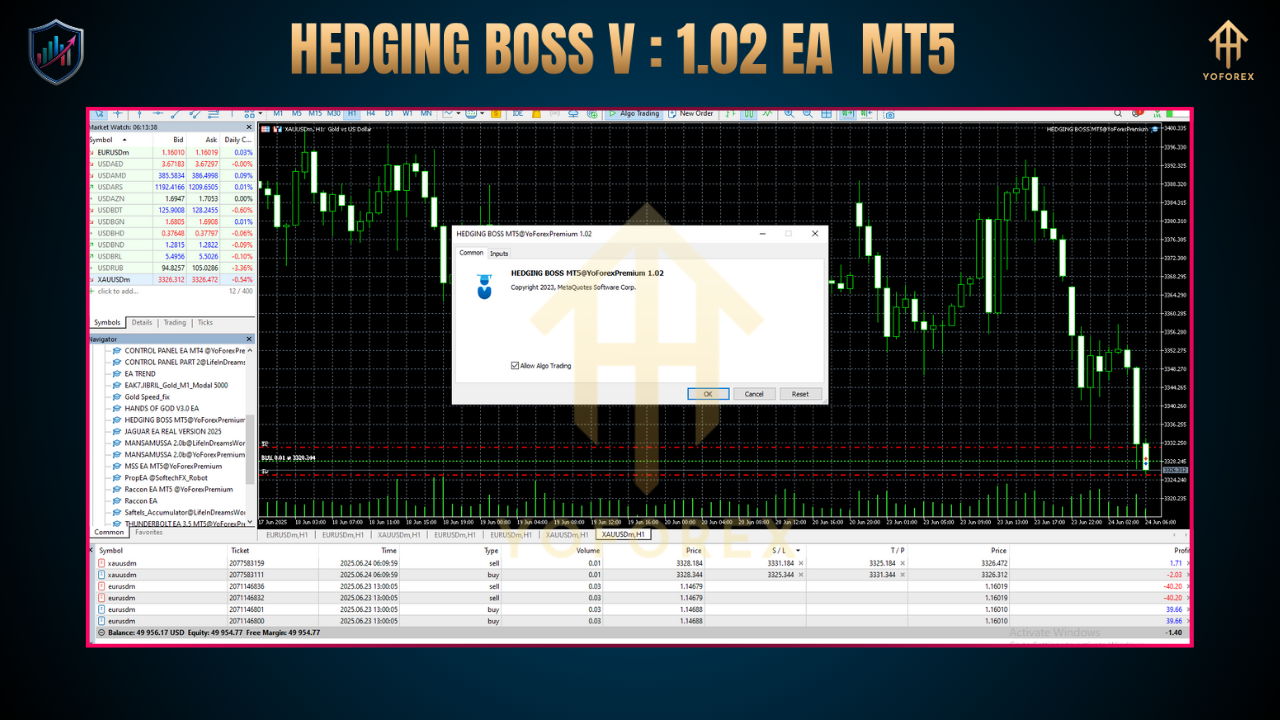 At its core, Hedging Boss EA is a MetaTrader 5 expert advisor engineered to automatically open hedge trades when market movements hit predefined thresholds. Unlike typical single-direction systems, this EA monitors your primary position and, if price action turns against you, opens a counter-trade in the opposite direction—effectively locking in virtual profits or limiting losses until the market stabilizes. Once the price swings back in your favor, Hedging Boss EA will close both positions at a net profit or minimal loss, optimizing your equity curve along the way.