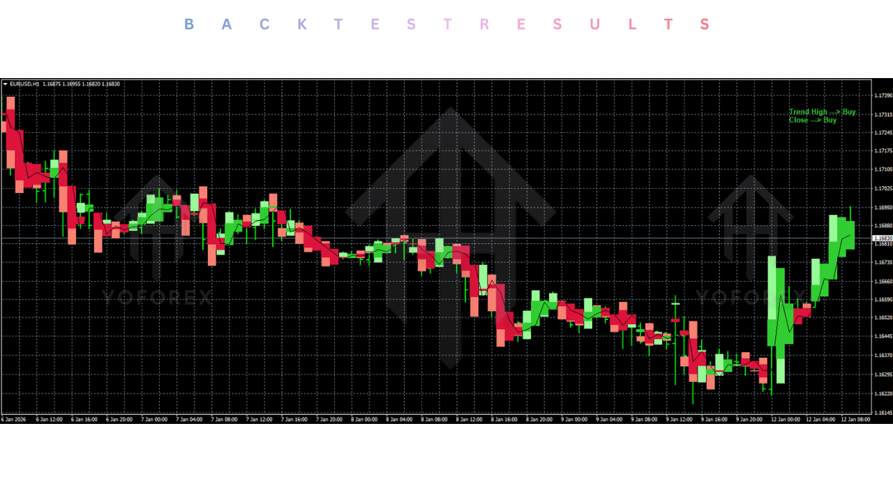 Since the Heiken Ashi Pro Indicator V1.0 is a manual trading tool and not an automated Expert Advisor (EA), it cannot be backtested in the Strategy Tester in the traditional sense. However, its performance can be verified through "Visual Backtesting" on historical chart data.