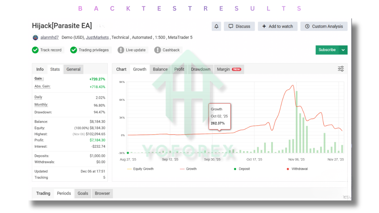 Core Highlights of Hijack Parasite EA V5.4 MT5