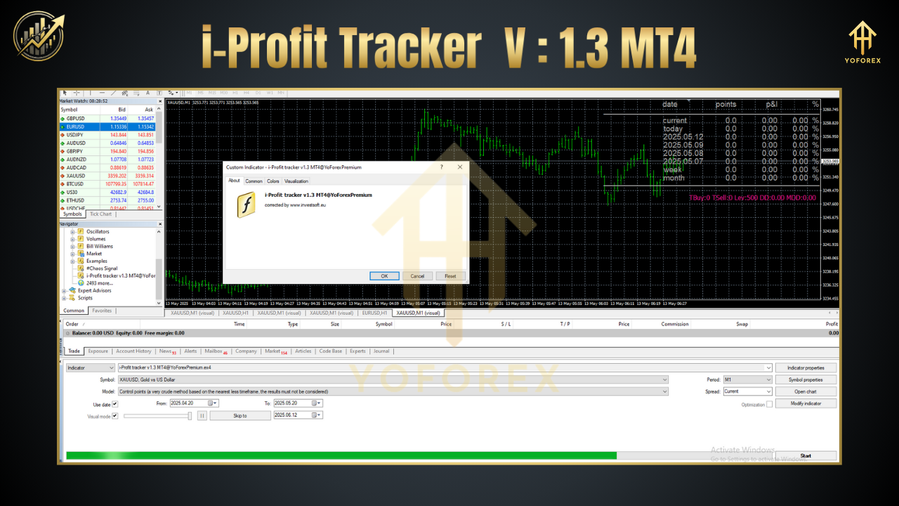 i-Profit Tracker is a performance-monitoring indicator for MetaTrader 4 that provides detailed insights into your trading behavior, such as: