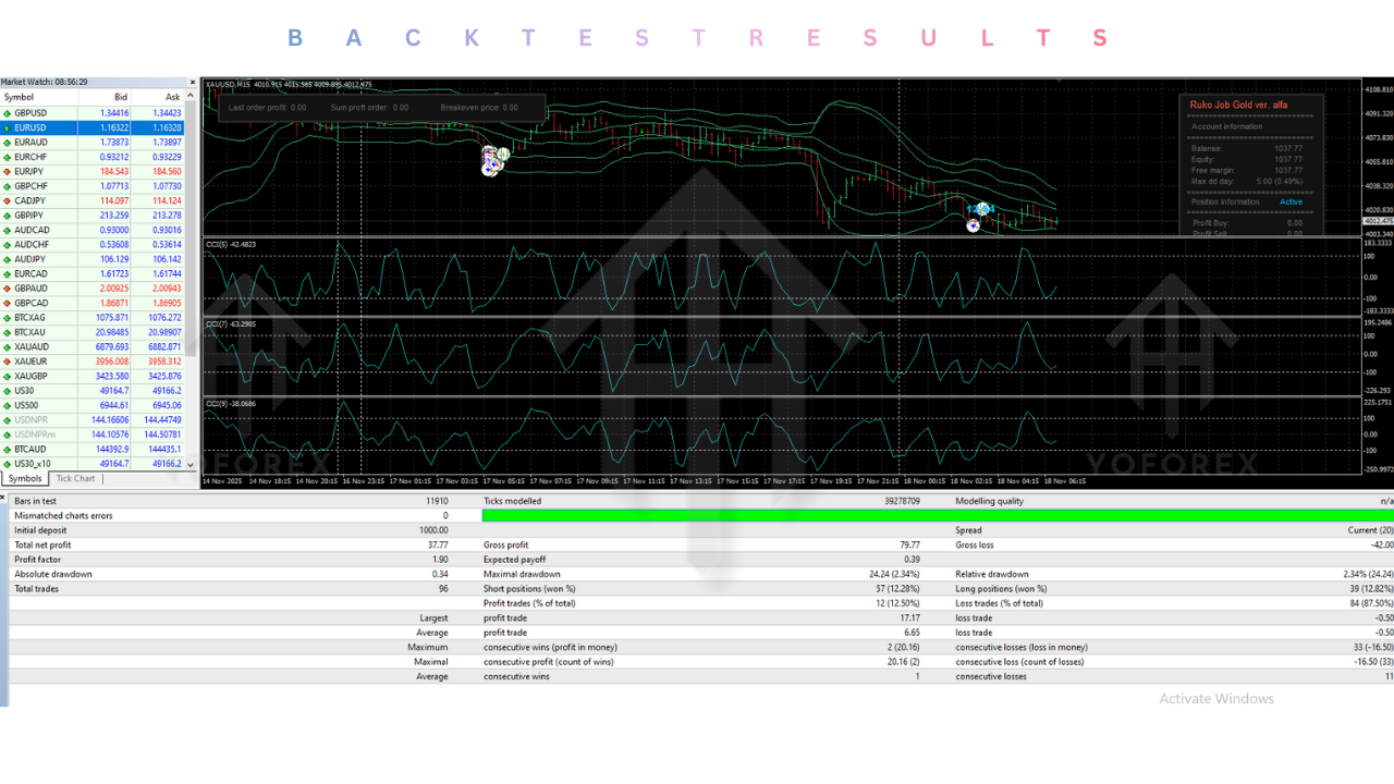 - Asset: XAUUSD (Gold). Do not run this on currency pairs without separate optimization.
