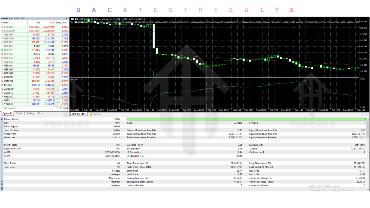 - USDJPY M30 Optimization: The default parameters are heavily tuned for the USDJPY pair. The EA's internal logic understands the "breath" of the Yen crosses—specifically their daily range and retracement patterns—allowing it to set Stop Losses and Take Profits that avoid the noise while capturing the main move.