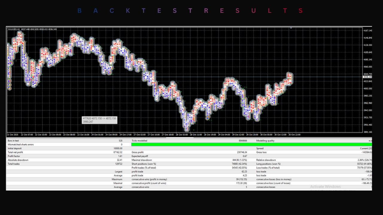 Before running this EA on a live account, backtesting is mandatory. Use the Strategy Tester in MT4 (Ctrl+R) to simulate the bot's performance over historical data.