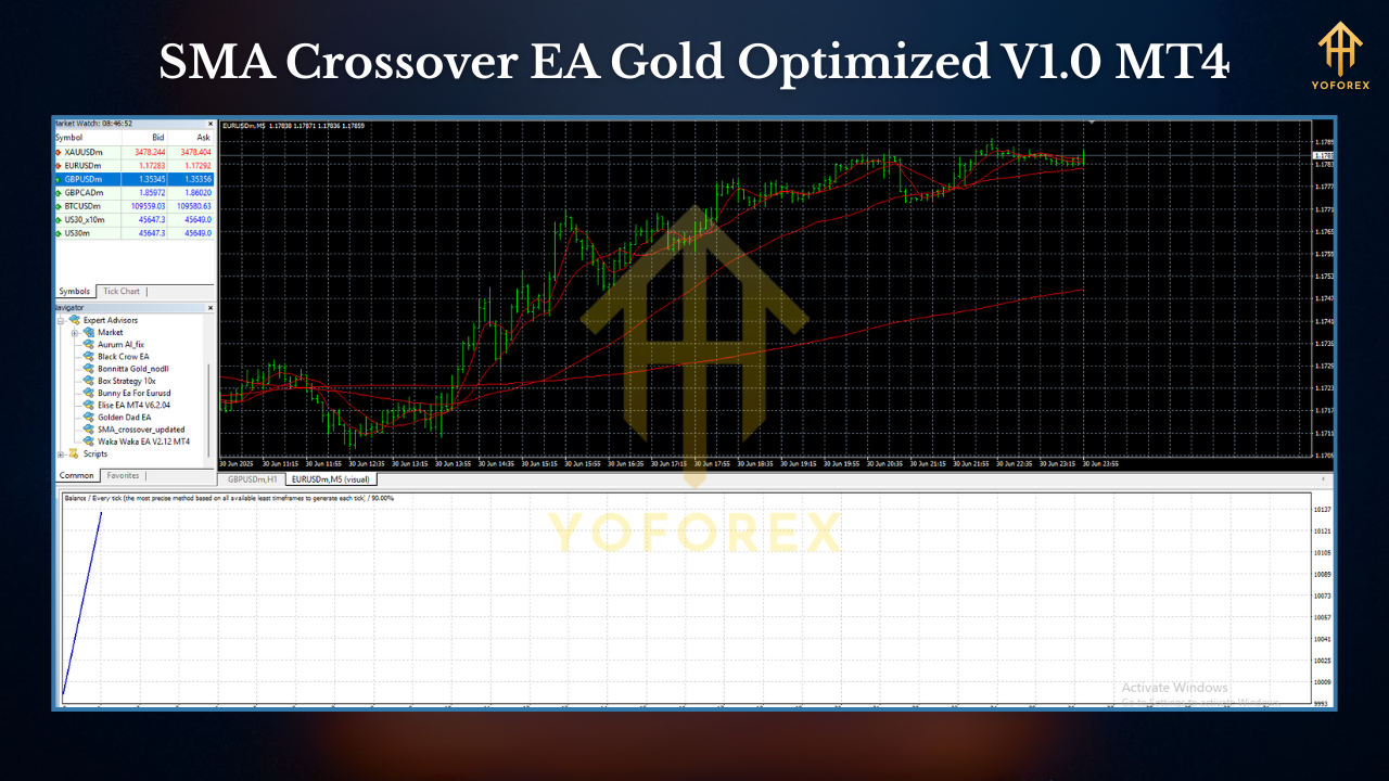 The SMA Crossover EA Gold Optimized V1.0 MT4 is built for traders who want a straightforward automated strategy tuned for one of the most popular instruments—XAUUSD. Gold has unique volatility and price action, and this EA’s filters were adjusted to reduce false breakouts while still catching large directional moves.