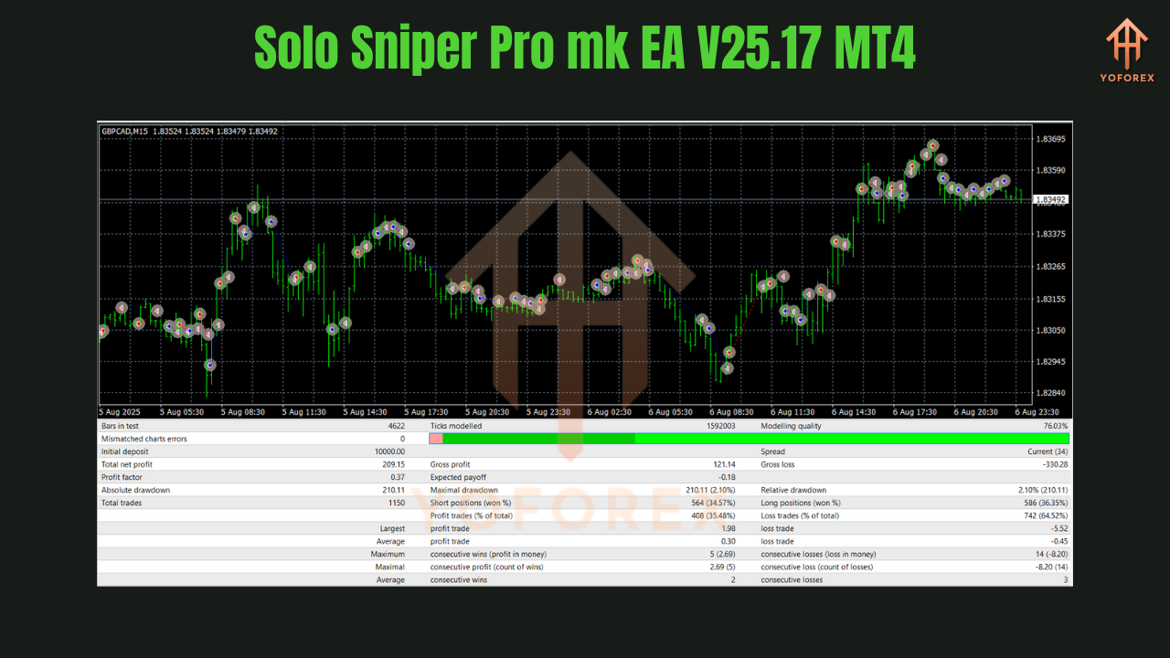 If you want a 90% win rate sniper EA that scalps with precision, the Solo Sniper Pro mk EA V25.17 MT4 is your perfect choice.