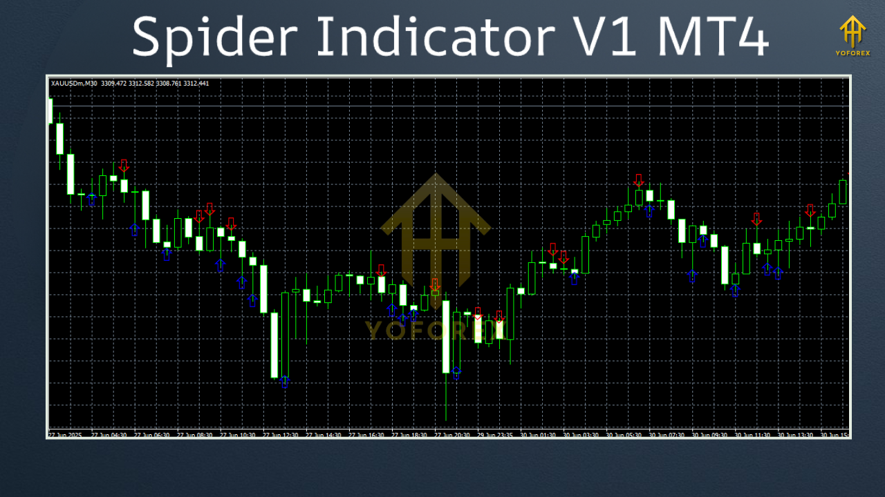 The Spider Indicator V1 is a trading tool for MT4 designed to simplify trading decisions. It generates non-repainting arrow signals that clearly mark entry and exit points on your chart. Built with trend-following and momentum filters, it helps traders avoid false signals and focus only on high-probability setups.
