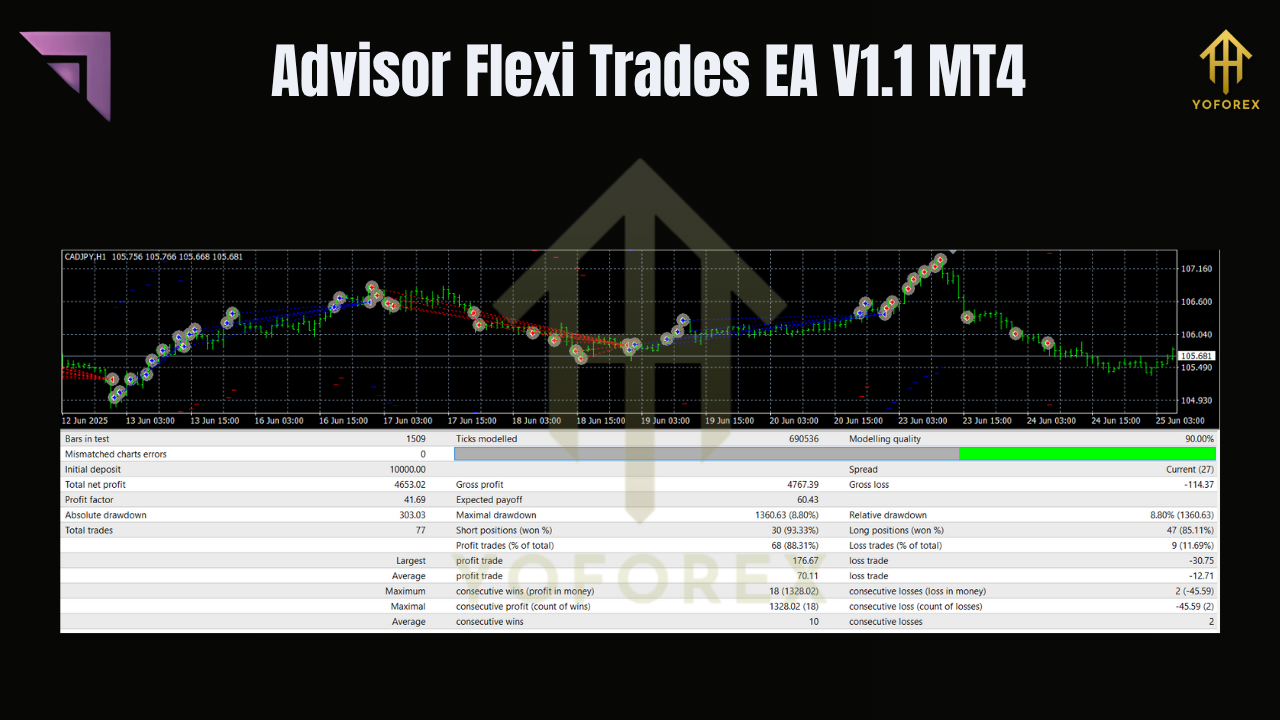 By combining these elements, Flexi Trades EA captures clear trend bursts while minimizing false breakouts. You get a strategy that’s neither “spray-and-pray” nor over-optimized for one market regime. Instead, it adjusts in real time, making it a genuinely flexible trading robot.