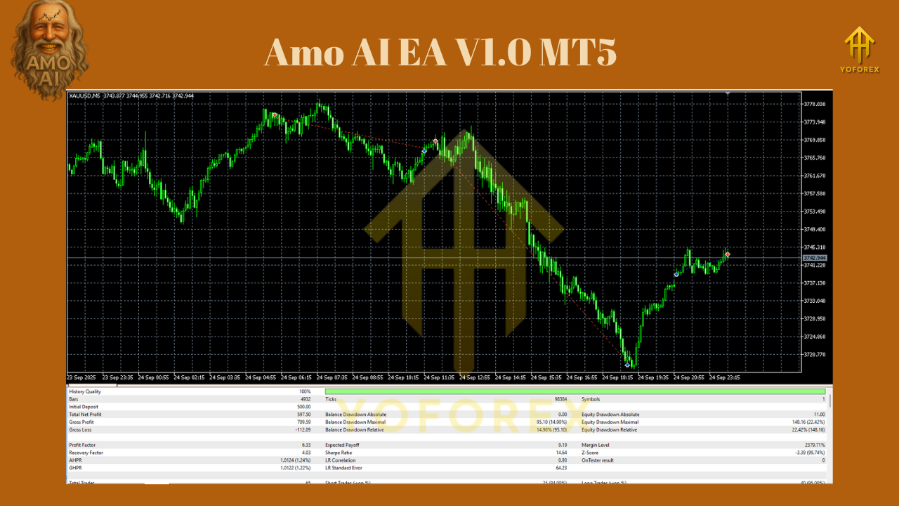 In backtests with default parameters on EURUSD and XAUUSD, Amo AI EA showed: