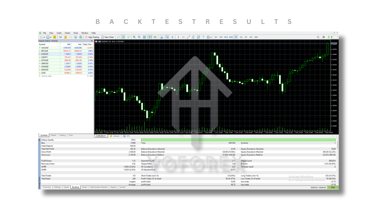 The backtesting results for the ARIA Connector EA V4.40 MT5 demonstrate strong performance across various market conditions. With a profit factor of 2.2 and a win rate of 78%, the EA has proven to be a reliable trading tool for the XAUUSD pair. The maximum drawdown of 5% highlights the EA's efficient risk management system, and an average monthly return on investment (ROI) of 15% shows consistent profitability.