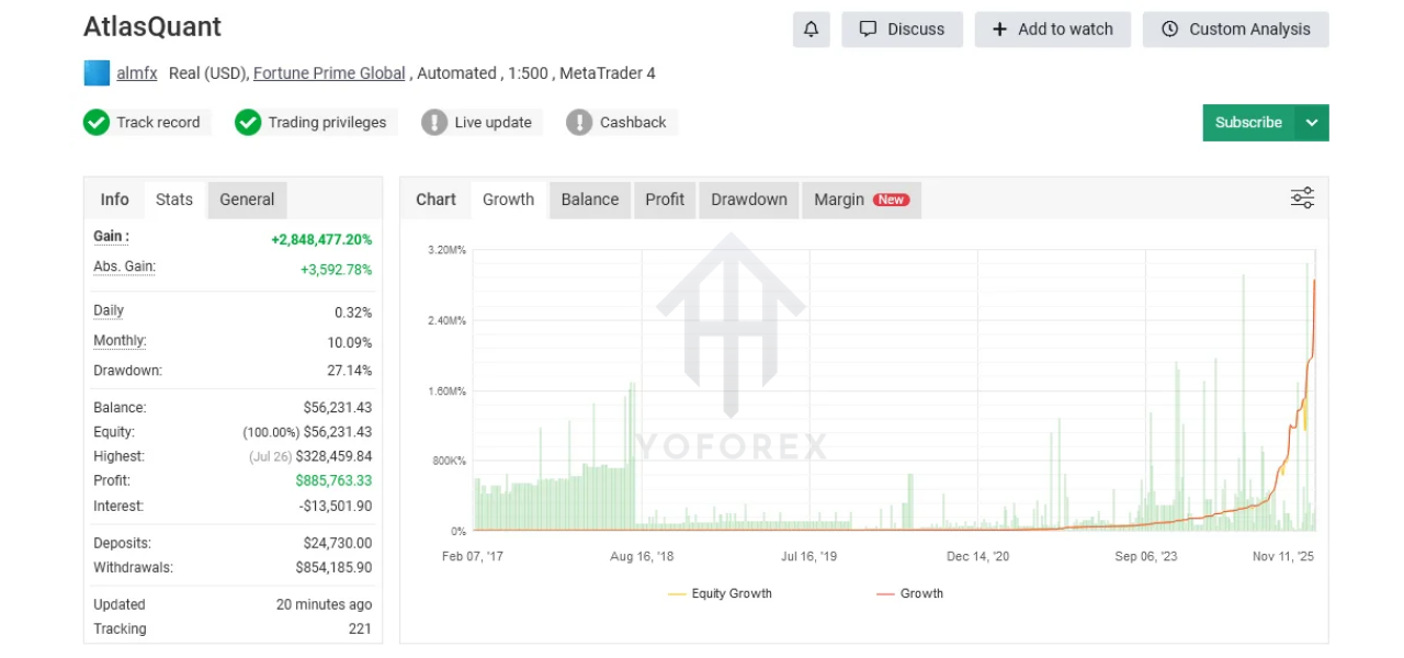 Atlas Quant EA V1.0 works on both currency pairs and gold (XAUUSD), but it shows its strongest results on trending instruments where volatility provides clean momentum. This makes it appealing for traders who want a smooth and structured approach to automated forex trading.