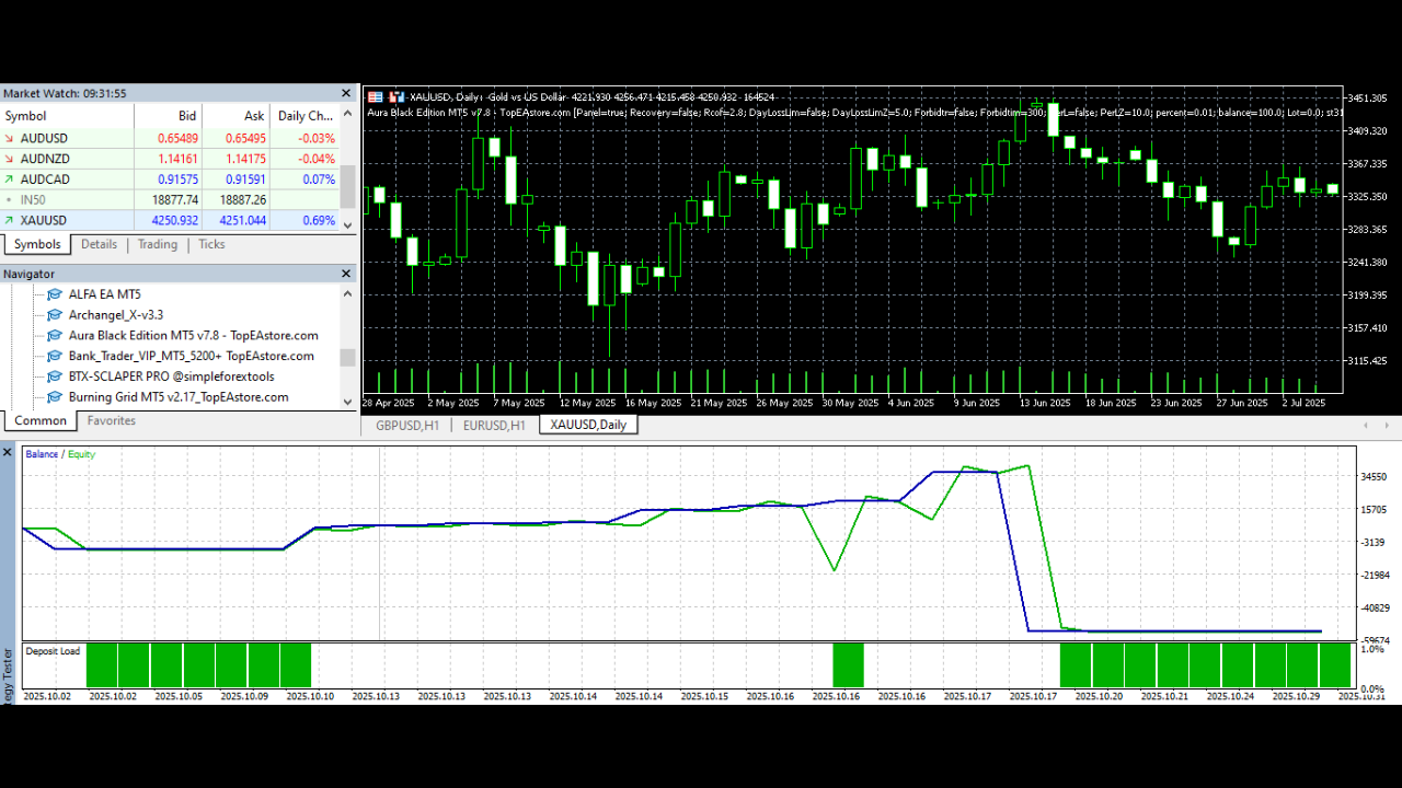 Aura Black Edition EA V7.8 MT5 – Complete Review for 2025 (XAUUSD D1 Strategy)