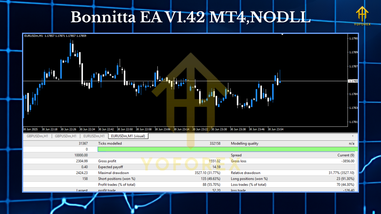 Bonnitta EA V1.42 MT4 is a disciplined, modern trading robot that prioritizes risk control and realistic execution. It won’t “print money” in sideways chop or during random spikes—and that’s the point. When configured well on the right pairs and broker conditions, it can deliver consistent, prop-friendly trade flow without crazy equity swings. If you’re done with roulette-style bots and want something you can actually manage, this EA’s worth a proper test drive.