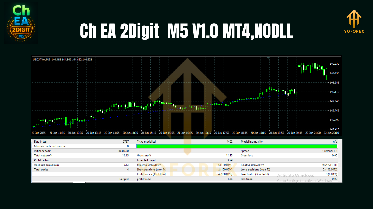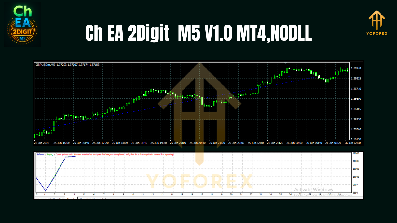 With its innovative algorithm, Ch EA 2Digit M5 V1.0 ensures precise, high-frequency trading, designed to capture profit from small market movements. It’s ideal for traders who prefer a quick-paced, automated trading system.