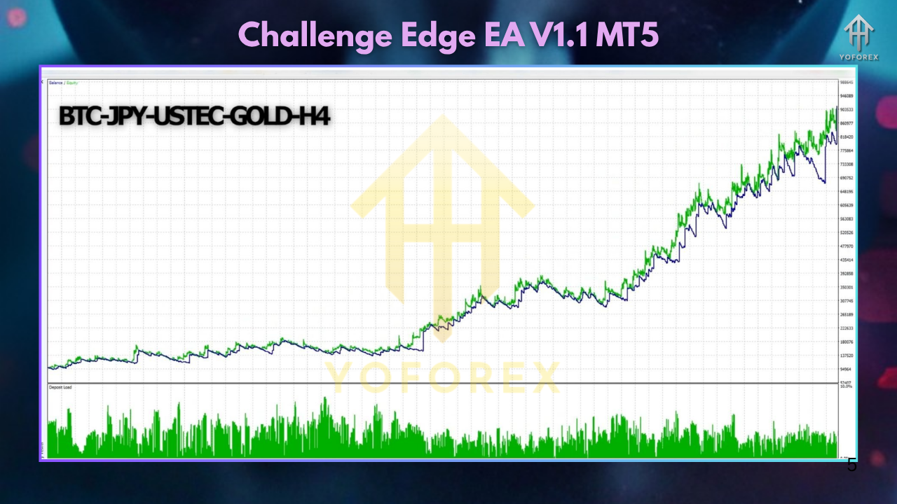 The Challenge Edge EA V1.1 is a next-gen MetaTrader 5 Expert Advisor designed for traders who are focused on prop firm challenges or live funded accounts. It trades XAUUSD (Gold), EURUSD, and NAS100 (US100) efficiently using momentum and liquidity-driven algorithms.