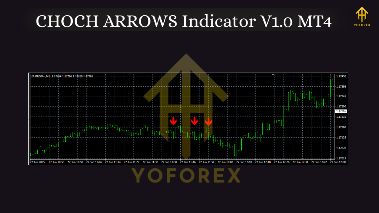 The problem? Manually spotting these in real-time is tough. Many traders mark them late, entering after the move is already halfway done. The CHOCH ARROWS Indicator V1.0 MT4 solves this by instantly showing arrows at the exact point of structure change.