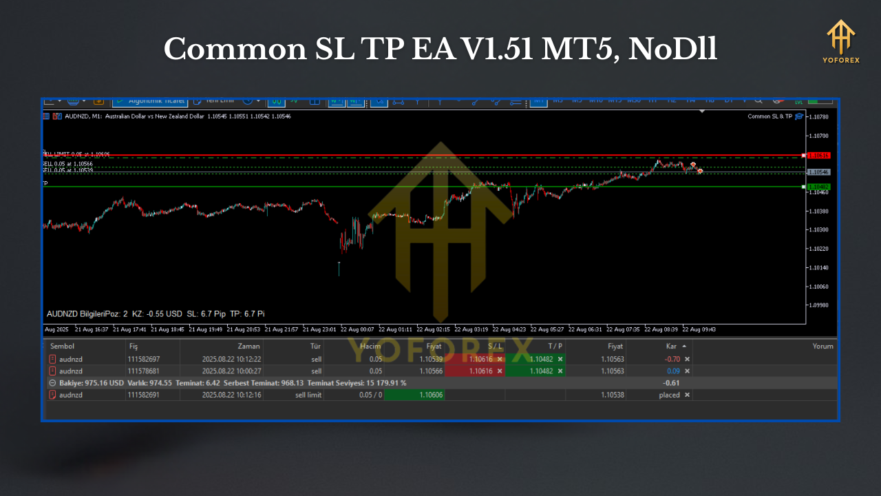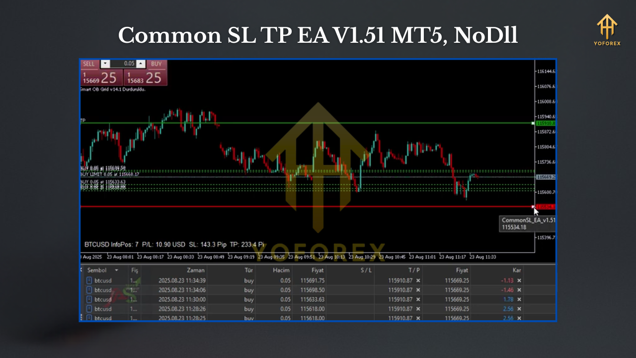 If you’ve ever stared at a screen with five open positions and realized each one has a different stop-loss (or none at all 😬)… this one’s for you. Common SL TP EA V1.51 MT5 is a lightweight, dependable trade manager that applies shared stop-loss (SL) and take-profit (TP) across all (or filtered) orders on your MetaTrader 5 terminal. Instead of babysitting every single ticket, you define one risk/target for the whole basket—clean, consistent, and way harder to mess up when volatility spikes.