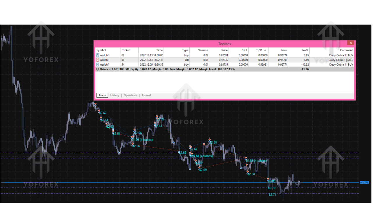 The name “Crazy Cobra” reflects the style of its entries — fast, precise, and calculated. Just like a cobra strike, the EA waits patiently for the right moment, then executes positions with accuracy and force.
