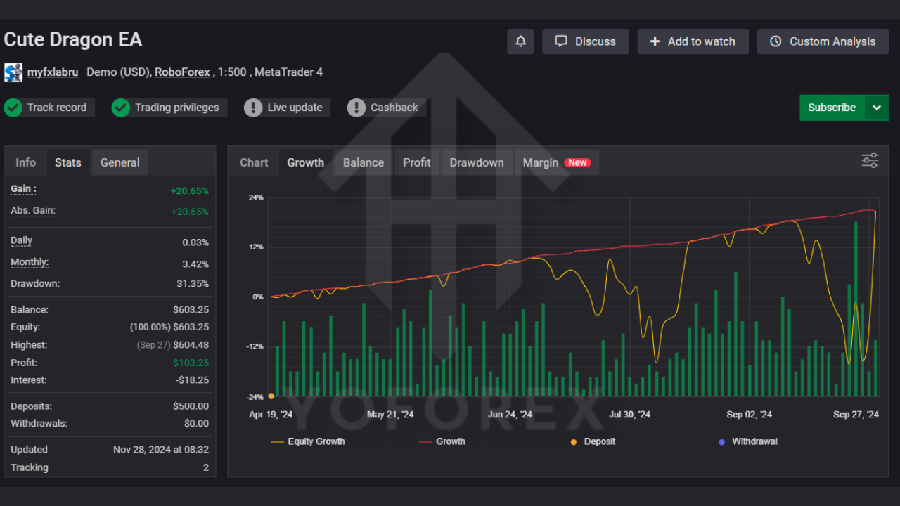 In this new review, we explore how CuteDragon ALGO EA MT4 works, what makes its algorithm different, and how traders can use it to build stable, consistent performance without constant chart-watching.
